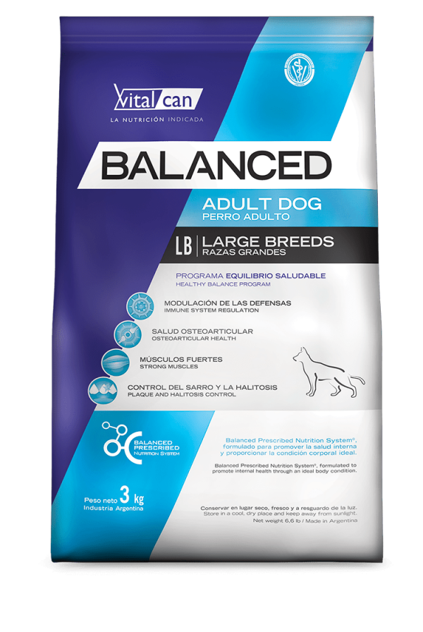 Vitalcan Balanced es ideal para perros adultos de raza grande porque su Programa Equilibrio Saludable les proporciona:
